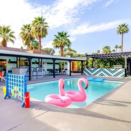 Die Villa Rat Pack Rendezvous - An Entertaining Experience Palm Springs liegt circa 2 Kilometer vom Palm Springs International Airport entfernt und verfügt über einen Swimmingpool zur Entspannung der Gäste. Diese Villa befindet sich ca. 10 Minuten Autofahrt vom Erlebnisbad Wet'n'Wild Palm Springs entfernt und verfügt über eine Terrasse.